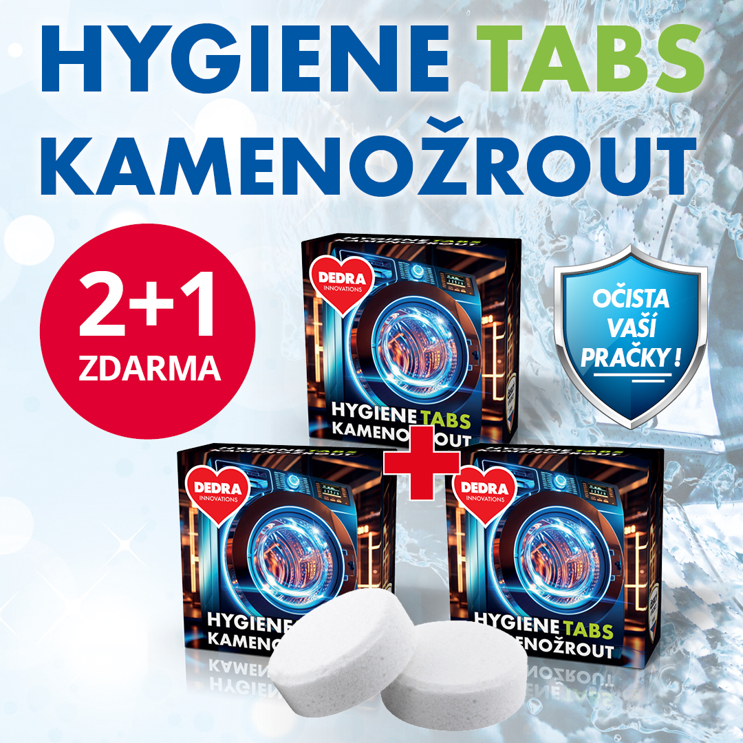 Ekologický čistič pračky proti zápachu a usazeninám HYGIENE TABS KAMENOŽROUT (6 × 35 g) nyní jen za 198 Kč před klubovou slevou.